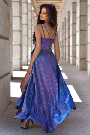 Sukienka wieczorowa z połyskiem niebiesko-różowa – Tifani